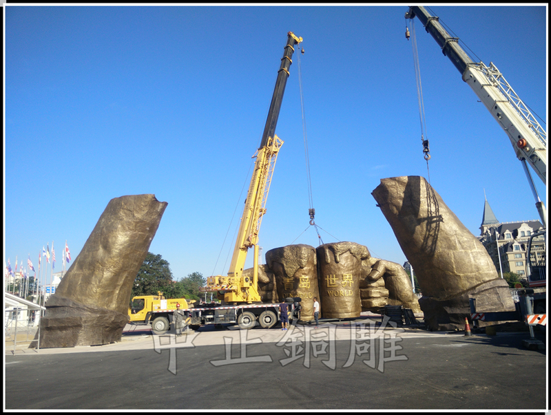 安裝于青島市金沙灘啤酒節黃島廣場,雕塑總高13.8米,重35噸,歷時3個月完工。