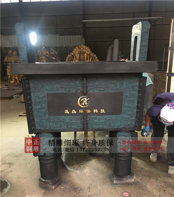我廠是一家大型銅鼎生產廠家,生產的這尊大型銅鼎現已發往臨汾市永和縣坡頭鄉迅磊環保科技有限公司,歡迎有需要定制銅鼎的新老客戶前來廠家實地考察。